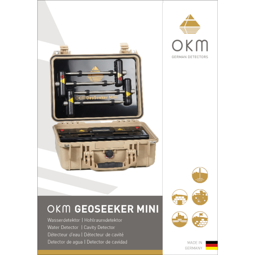 Der geoelektrische Detektor OKM GeoSeeker Mini wird im Wesentlichen zur Suche nach unterirdischen Wasserressourcen und verborgenen Hohlräumen eingesetzt. Beide Strukturen können aufgrund ihrer spezifischen Unterscheidbarkeit im Hinblick auf den elektrischen Widerstand geortet werden.