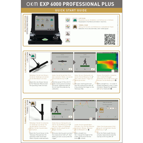 Le scanner de sol et détecteur de métaux eXp 6000 est un des appareils de pointe de OKM pour les chasseurs de trésors, les détectoristes, les archéologues, les chercheurs d'or et les professionnels de la construction. Ce détecteur est entièrement sans fil et peut être commandé via l'écran tactile ou l'ordinateur portable. Il est le premier scanner de sol 3D au monde à utiliser la sonde télescopique innovante OKM, qui peut être étendue à 124 cm.