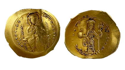 Ab 1034, unter Kaiser Michael dem Vierten, ging der Goldgehalt aufgrund finanzieller Engpässe und politischer Unruhen allmählich zurück. Die in der Türkei gefundene Münze stammt aus den 1060er Jahren und dürfte einen Goldanteil von etwa 66 % haben, was 16 Karat entspricht.